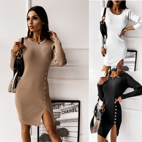 2020跨境外贸wish 速卖通 秋冬新款圆领纽扣...