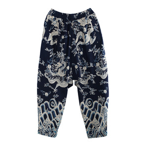 22年秋冬新品加绒裤休闲长裤民族风风棉麻哈伦裤龙纹...