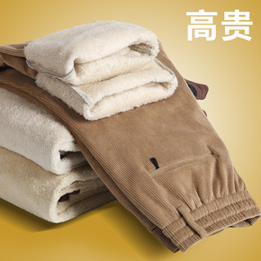 休闲裤 男士休闲松紧系绳加绒绒加厚保暖羊羔绒加绒束...