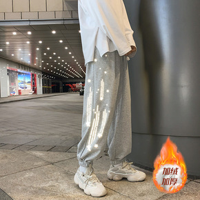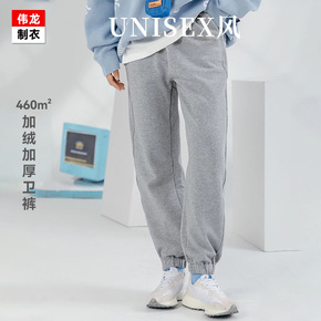 伟龙制衣加绒加厚卫裤男中性风束脚裤子冬季新款纯色潮...