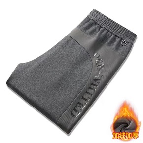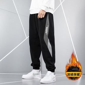 加绒加厚男裤时尚字母压印运动裤冬季保暖休闲裤宽松束...
