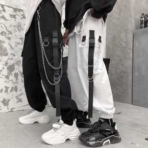 薄/加绒裤子男韩版ins潮流暗黑系高街嘻哈多口袋束...