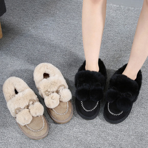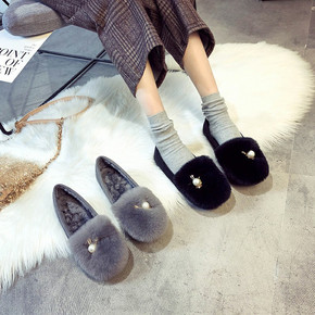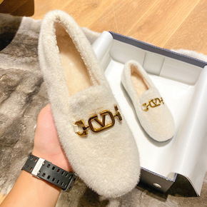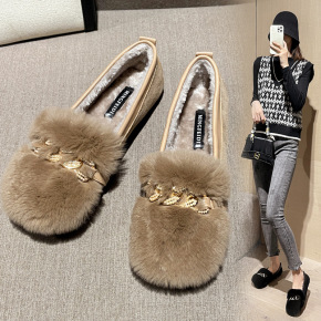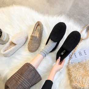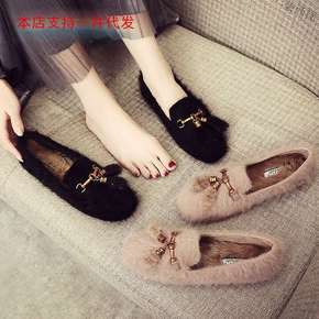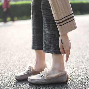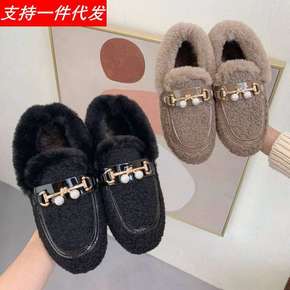 豆豆鞋女2021冬季新款百搭平底毛毛鞋外穿保暖防滑...