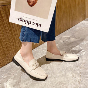 真软皮英伦风小皮鞋女2022春秋新款豆豆鞋平底黑色...