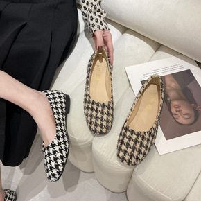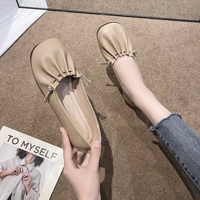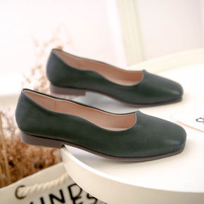 外贸单鞋女2022新款浅口平底豆豆鞋方头软底蛋卷鞋...