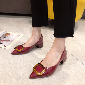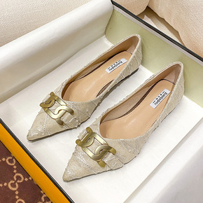 尖头单鞋女2022年春季新款简约气质浅口方扣豆豆鞋...