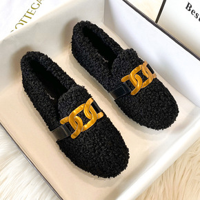 羊羔毛毛鞋女2022冬季新款百搭加绒保暖豆豆鞋舒适...