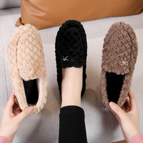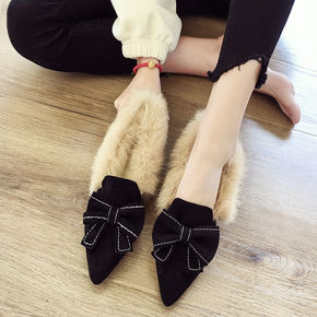 毛毛鞋女秋冬季外穿加绒蝴蝶结休闲一脚蹬平底豆豆鞋绒...