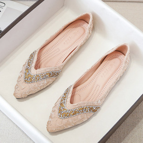 平底单鞋女2022春季新款尖头瓢鞋水钻亮片四季船鞋...