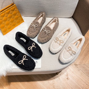 女款豆豆鞋网红羊羔毛女秋冬季新款外穿鞋加绒平底棉瓢...