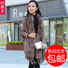 西藏丽江大理民族风女孩披肩斗篷秋冬厚针织流苏围巾披...