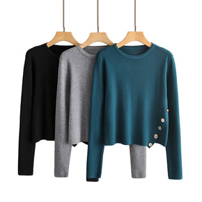 2021春款毛衣女针织女装秋冬圆领修身毛衫短款大码...