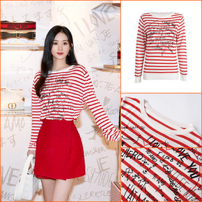赵丽颖同款条纹爱心针织打底粉色开衫高腰a字半身裙两...