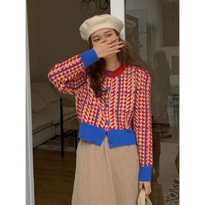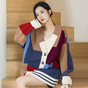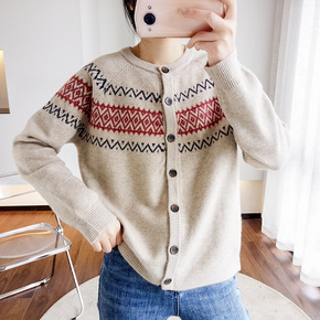 910268单排扣开衫毛衣女秋冬装新款复古民族风提...