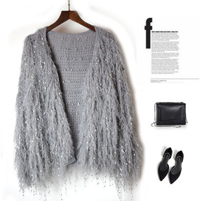 欧洲站秋冬新款名媛流苏上衣手工钩织毛衣开衫外套女...