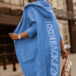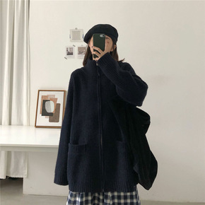 2020秋冬新款欧美纯色提花上衣外套休闲宽松开衫毛...