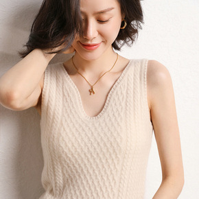 羊绒吊带背心女设计感秋冬新款麻花V领修身打底无袖坎...