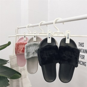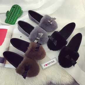2017春秋季新款兔毛平跟韩版单鞋女百搭毛毛鞋鞋学...