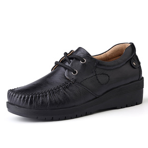 秋季新款牛皮女鞋女士软底休闲鞋系带女单鞋舒适妈妈鞋...