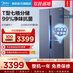 适用美的443升T型十字门双开门冰箱变频家用嵌入式...