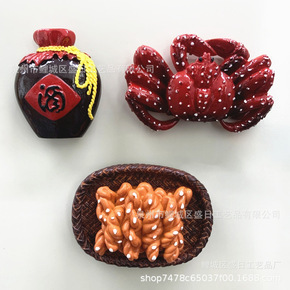 手绘纪念品仿真海鲜螃蟹重庆小麻花喜庆酒坛树脂冰箱贴...