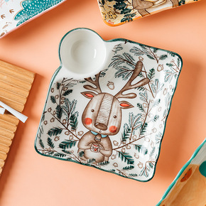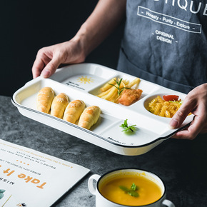 一人食早餐盘子套装分格餐盘四格儿童分隔餐具减脂陶瓷...