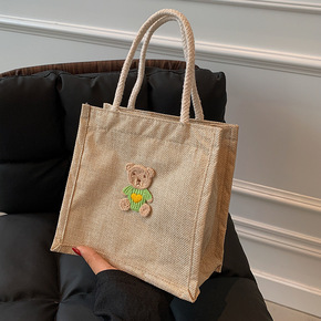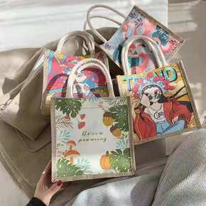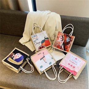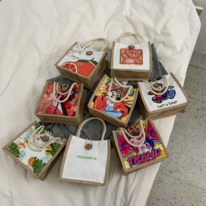 原创简约麻布包日韩女手提包包潮卡通文艺手拎零食袋环...