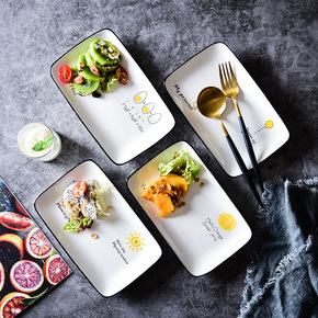 北欧创意西餐盘早餐盘陶瓷长方盘水果家用菜盘寿司盘子...