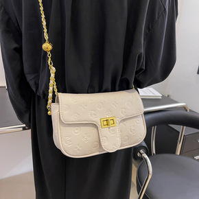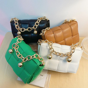 潮2022春季新款韩国网红小金球粗链条编织斜挎包迷...