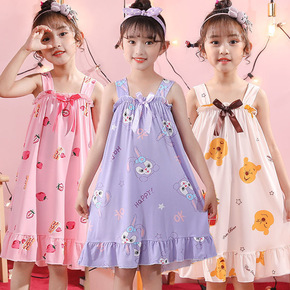 夏季儿童睡裙女童薄款无袖吊带女孩睡衣中大童网红卡通...