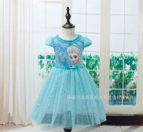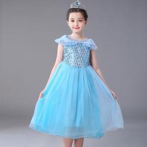 2021夏季新款冰雪奇缘公主裙女童生日连衣裙外贸表...