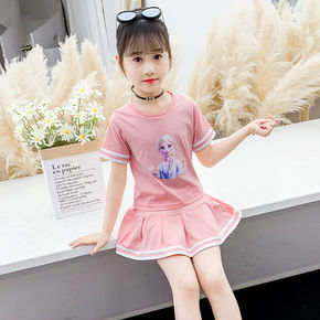 儿童套装冰雪奇缘公主裙2021女童夏装爱莎裙子T恤...