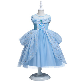 新款灰姑娘公主裙女童蓬蓬裙冰雪奇缘表演礼服连衣裙外...