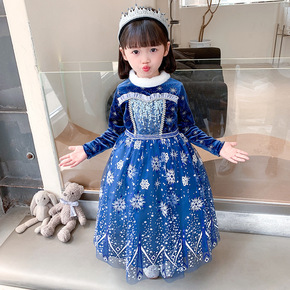 女童2021冬装新款冰雪奇缘爱莎公主秋冬款儿童加绒...