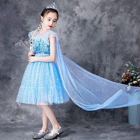 2022儿童礼服裙Frozen冰雪奇缘2艾莎公主蓬...