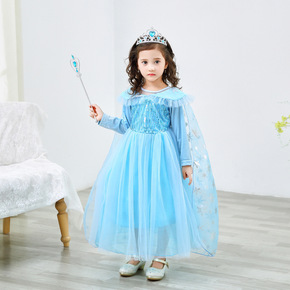 ins新款秋冬女童连衣裙万圣节圣诞节冰雪奇缘艾莎公...