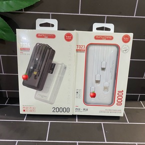 新款自带线移动电源20000毫安迷你便携式手机充电...