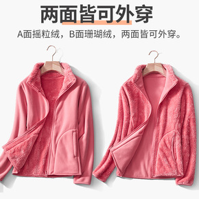 摇粒绒外套女冬季珊瑚绒居家保暖手抓绒上衣加绒加厚抓...