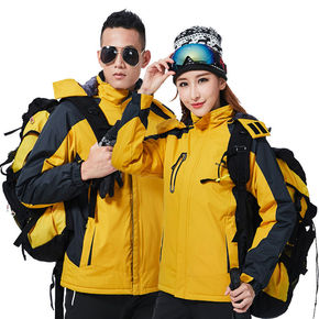 户外情侣款冲锋衣男女保暖防寒加绒加厚登山服大码防风...