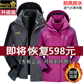 户外秋冬季冲锋衣男女三合一两件套可拆卸加绒加厚登山...