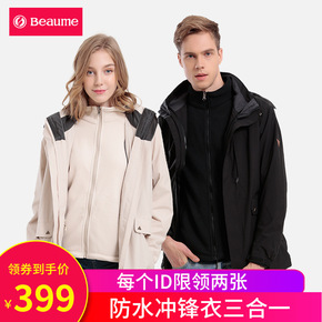 户外三合一冲锋衣男女中长款宝美北客防水登山服外套b...