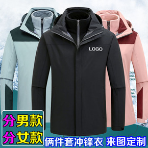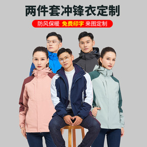 冲锋衣印logo内胆三合一可拆卸男女工作服刺绣工装...
