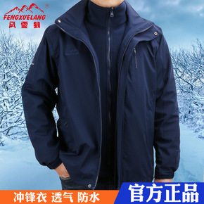 中老年冬季户外冲锋衣三合一男士加绒厚夹克大码宽松爸...