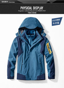 冲锋衣男三合一牛仔蓝防水透气修身商务工作服记者高端...