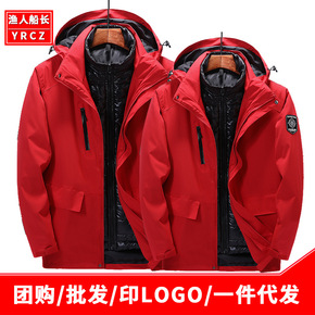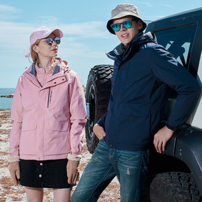 新品纯色冲锋衣定制情侣三合一两件套加绒加厚保暖防风...