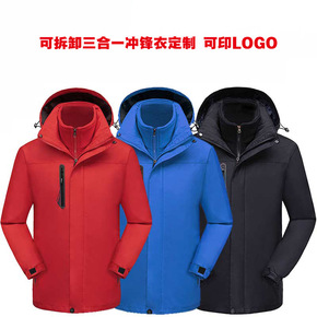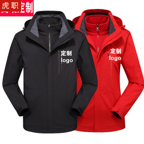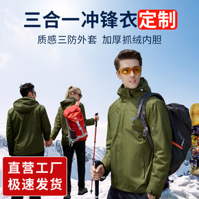 高端户外冲锋衣男女三合一可拆卸上衣加绒加厚登山服防...