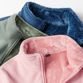 秋冬季抓绒外套男女加绒加厚双面绒冲锋衣内胆摇粒绒开...