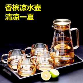 凡歌加厚玻璃冷水壶 小清新香槟凉水杯大容量果汁壶套...