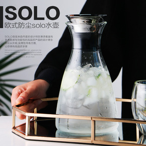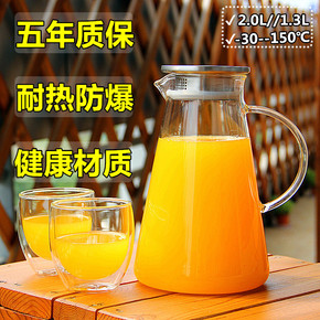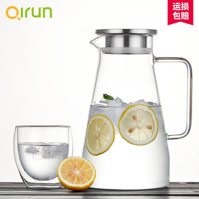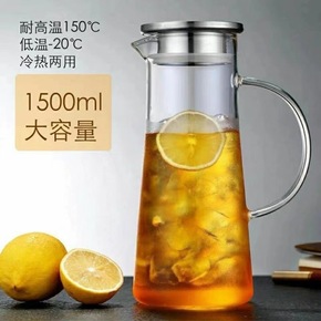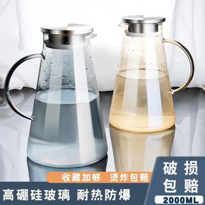高硼硅玻璃冷水壶透明加厚果汁壶大容量钢盖凉水壶玻璃...