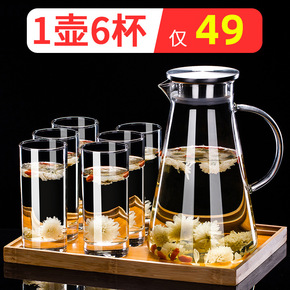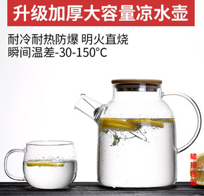 家用冷水壶高硼硅玻璃大容量水瓶凉白开水杯套装茶壶果...